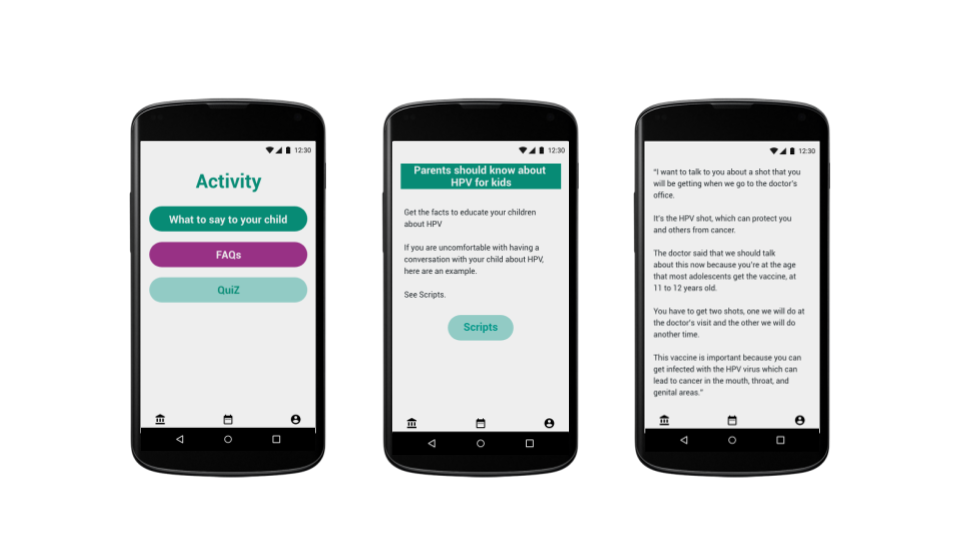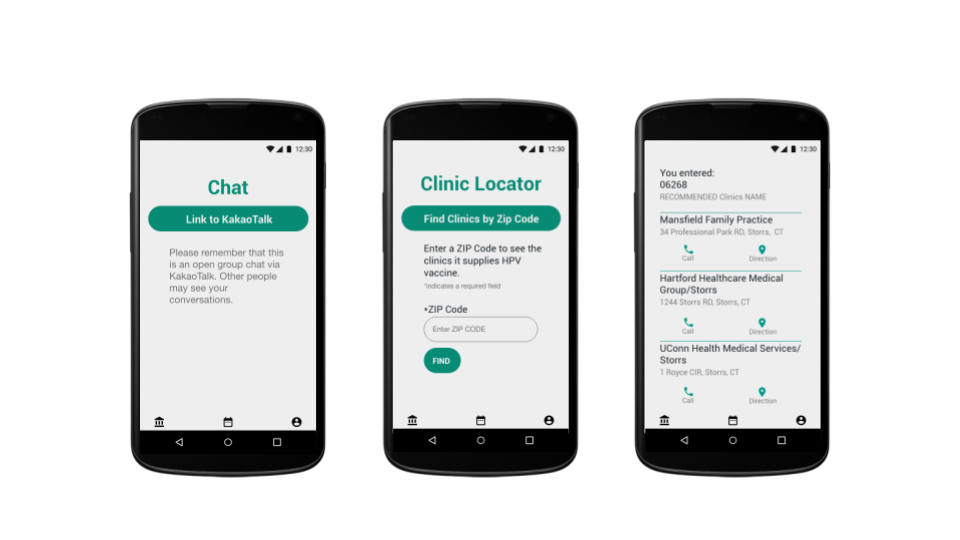 With this project, I have been collaborating with Dr. Kyounghae Kim from the School of Nursing at UConn. This is an app designed for parents of HPV Vaccine eligible children. There are four parts to this App: About HPV, Activity, Clinic Locator, and TalkTalk. My role in this project is UI/UX designer and visual designer. The research was published on CIN: Computers, Informatics, Nursing: September 9, 2021 – Volume – Issue – doi: 10.1097/CIN.0000000000000832.